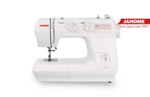 Máquina de coser doméstica Janome de brazo libre y lanzadera central oscilante equipada con 15 funciones diferentes. Ojal en 4 pasos, velocidad máxima 860 ppm, funda de plástico y soportes para poner los conos de hilo en metal (no plástico).