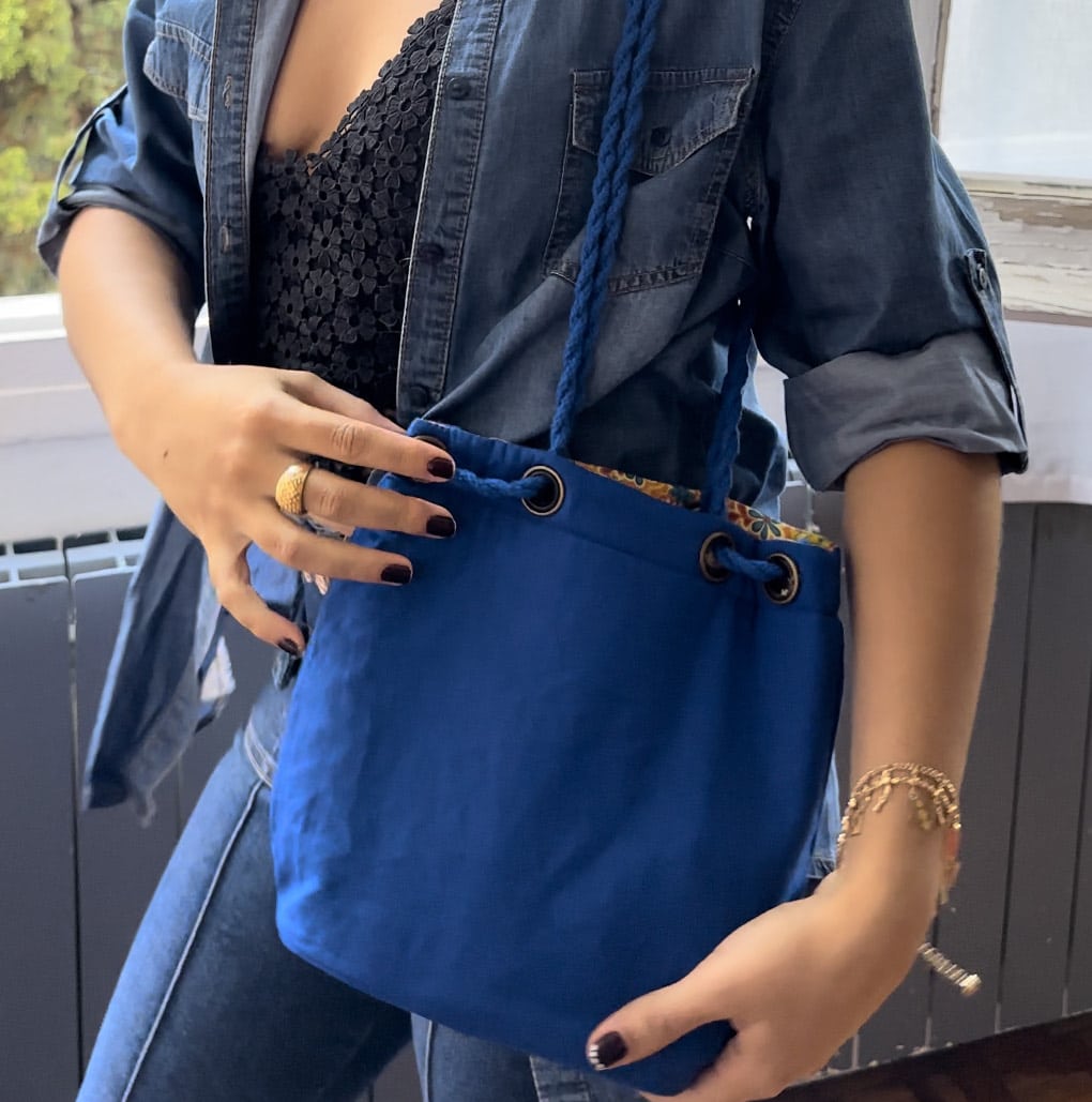 • 1,50 metros de Cordón azul klein ( al tono de ambos tejidos en algodón 100%).